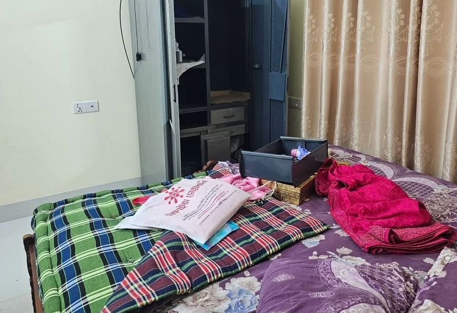 গত রাতে কোনো এক সময় বাড়ির পেছনের দরজার তালা ভেঙে এক বা একাধিক ব্যক্তি ঘরে প্রবেশ করে। সকালে স্থানীয়রা দরজার তালা ভাঙা অবস্থায় দেখে ভেতরে গিয়ে আলমারি, বিছানাসহ ঘরের সবকিছু লণ্ডভণ্ড অবস্থায় দেখতে পান।