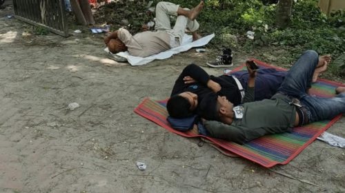 তীব্র গরমে তেল নিতে দীর্ঘ অপেক্ষা, মাদুর পেতে বিশ্রামে সাধারন মানুষ